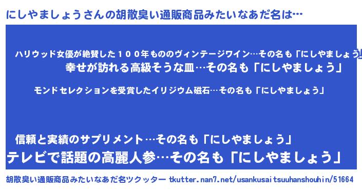 | 肩書あだ名 | 『にしやましょう少将』 |