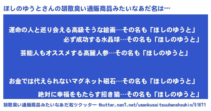 | 意味不明あだ名 | 『自称ほしのゆうと』 |