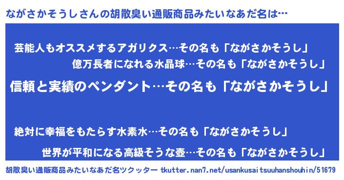 | 男性向けラノベタイトル風あだ名 | 『ダンジョンにながさかそうしを求めるのは間違っているだろうか』 |