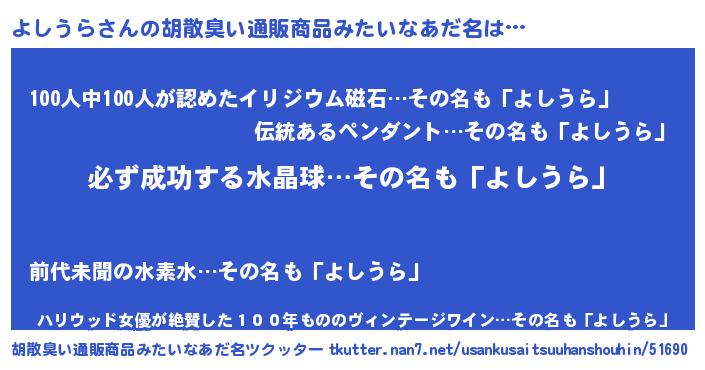 | ヒーロー風カッコイイあだ名 | 『スーパーヨシウラ』『仮面ヨシダー』 |