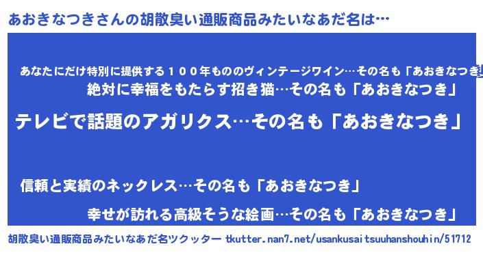 | 意味不明あだ名 | 『自称あおきなつき』 |