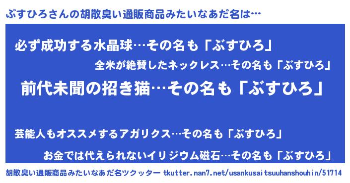 | ヘコむあだ名 | 『ぶすひろ(笑)』『ぶすもー』 |