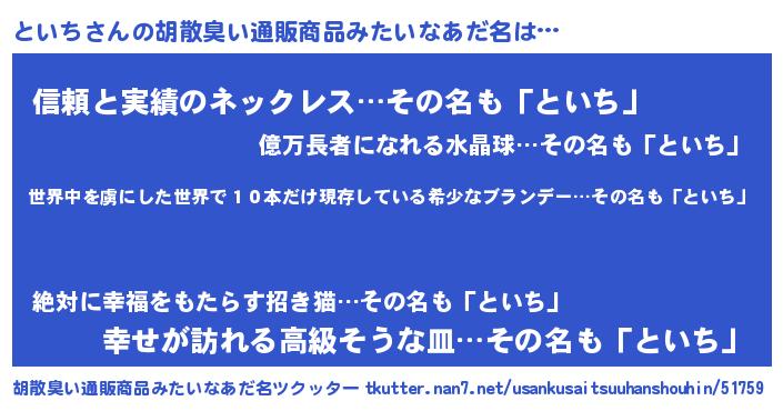 | ヘコむあだ名 | 『といぷりん』『つくし』『といにー』 |