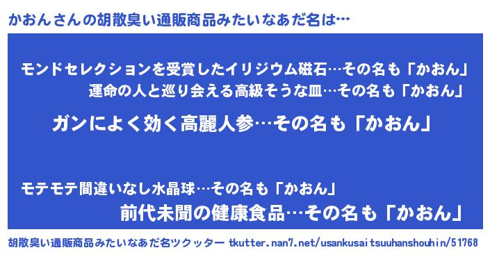 | 意味不明あだ名 | 『自称かおん』『眠気覚ましガムかおん味』 |
