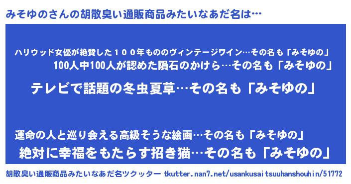 | 意味不明あだ名 | 『自称みそゆの』『永久保存みそゆの』 |