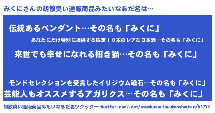 みくにさんの胡散臭い通販商品みたいなあだ名をツクッター!
