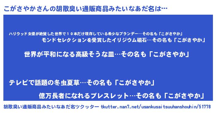 | 意味不明あだ名 | 『こがさやかフォーエバー』 |