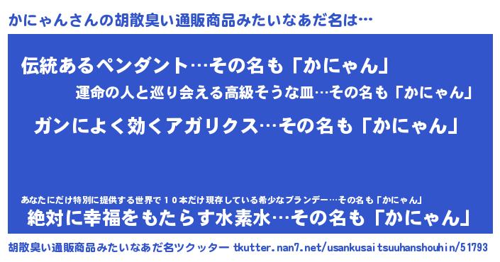 | 意味不明あだ名 | 『しいたけ科かにゃん属』『自称かにゃん』 |