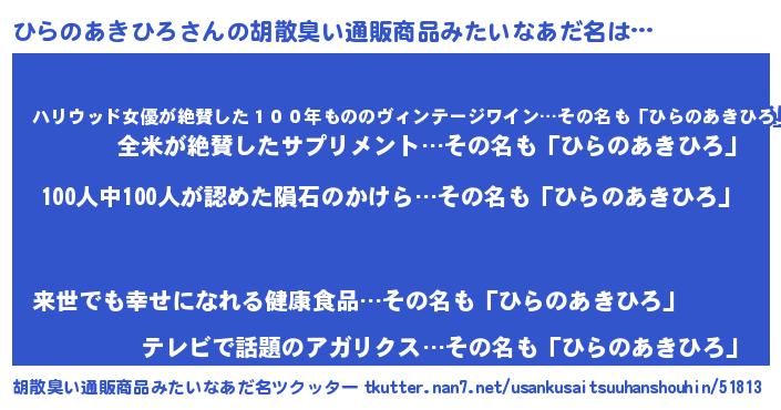 | 意味不明あだ名 | 『眠気覚ましガムひらのあきひろ味』 |