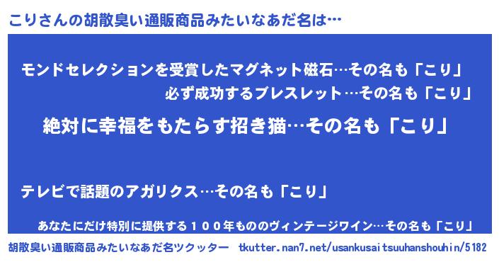 | ヒーロー風カッコイイあだ名 | 『ネオコリ』『友情の使者こり』 |