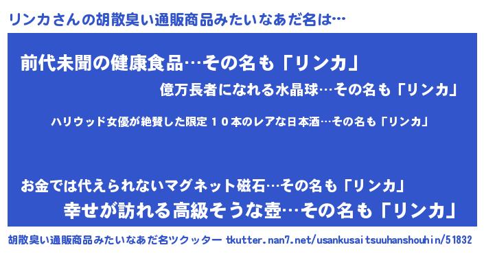 | 意味不明あだ名 | 『住所不定無職リンカ(53歳)』 |