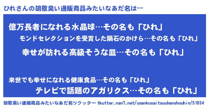| ヘコむあだ名 | 『牛乳』『ひれにゅー』『ひれ(笑)』 |