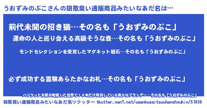 | ヘコむあだ名 | 『うおずみのぶこ(笑)』『なまこ酢』 |