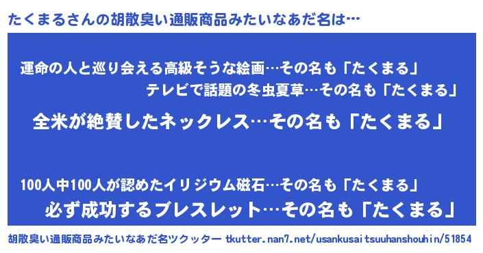 | 意味不明あだ名 | 『とにかく怪しいたくまる』 |