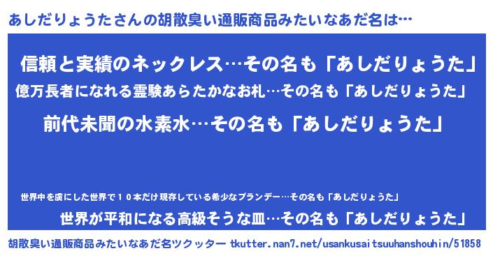 | 意味不明あだ名 | 『永久保存あしだりょうた』 |