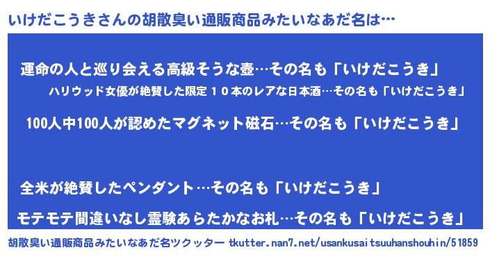 | 意味不明あだ名 | 『眠気覚ましガムいけだこうき味』 |