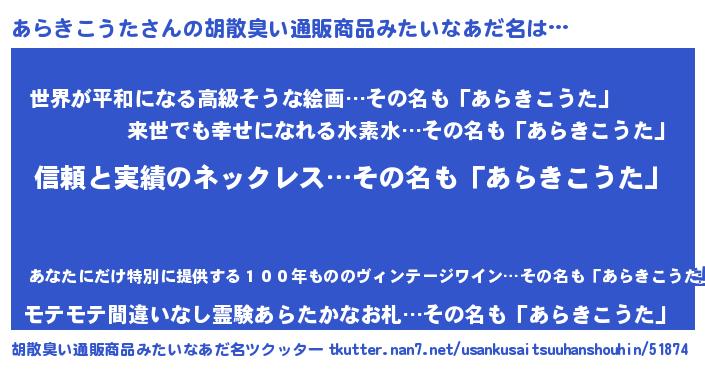 | 意味不明あだ名 | 『とにかく怪しいあらきこうた』 |