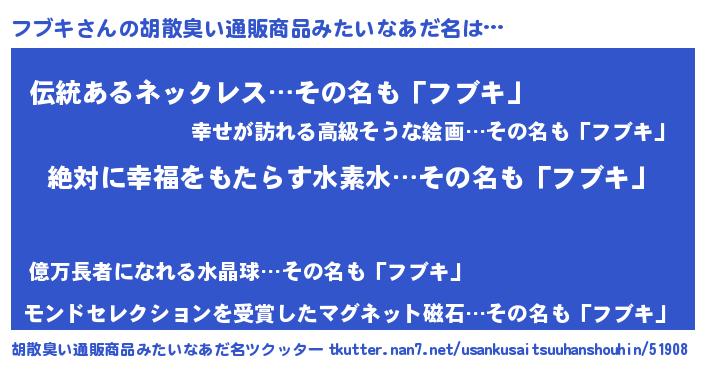 | 女子向けラノベタイトル風あだ名 | 『シンデレラフブキ家の靴箱館』 |
