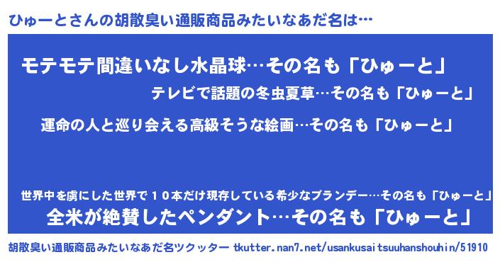 | 2回繰り返すあだ名 | 『ひひゅゅ』『ひゅひゅ』『ねとねと』 |