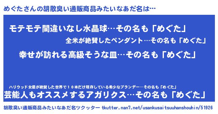 | ヘコむあだ名 | 『牛乳』『めぐにゅー』『めぐを』 |