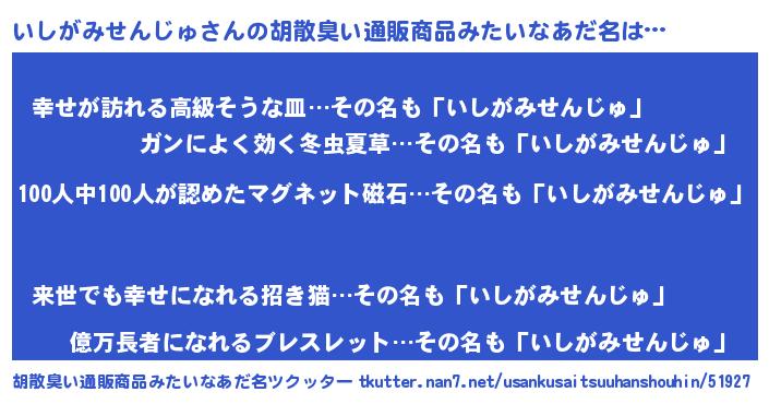 | ヒーロー風カッコイイあだ名 | 『正義の使者いしがみせんじゅ』 |