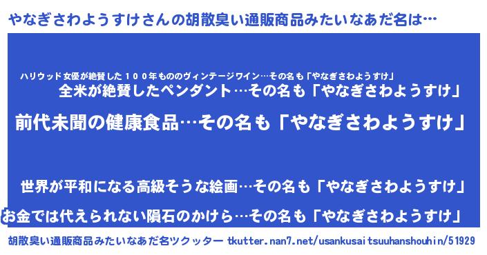 | 男性向けラノベタイトル風あだ名 | 『やなぎさわようすけに滅ぼされるだけの簡単なお仕事です』 |