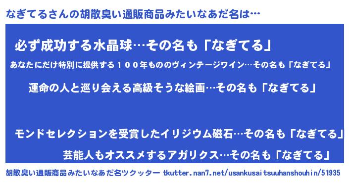| 意味不明あだ名 | 『ヨモギ科なぎてる属』『自称なぎてる』 |