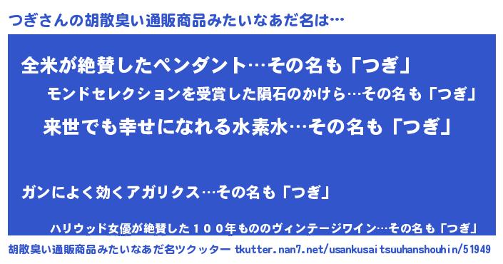 | ヘコむあだ名 | 『つぎ(震え声)』『つぎっぺ』 |