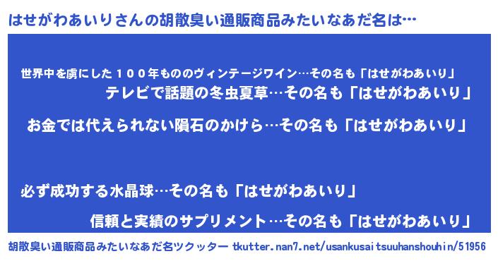 | 意味不明あだ名 | 『眠気覚ましガムはせがわあいり味』 |