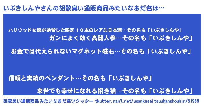 | ヘコむあだ名 | 『いぶきしんや(小並感)』『いぶ太郎』 |