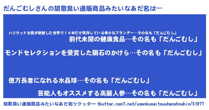 | 男性向けラノベタイトル風あだ名 | 『だんごむしに滅ぼされるだけの簡単なお仕事です』 |