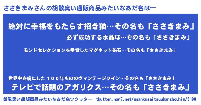 | ヘコむあだ名 | 『ささきまみ(笑)』『ささにー』 |