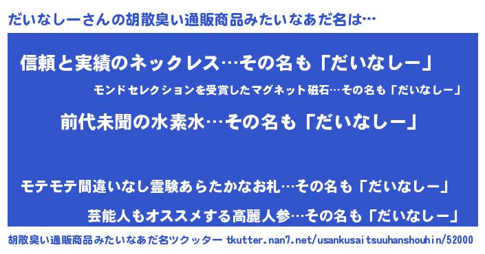 | ヘコむあだ名 | 『だいなしー(遠い目)』『だい太郎』 |