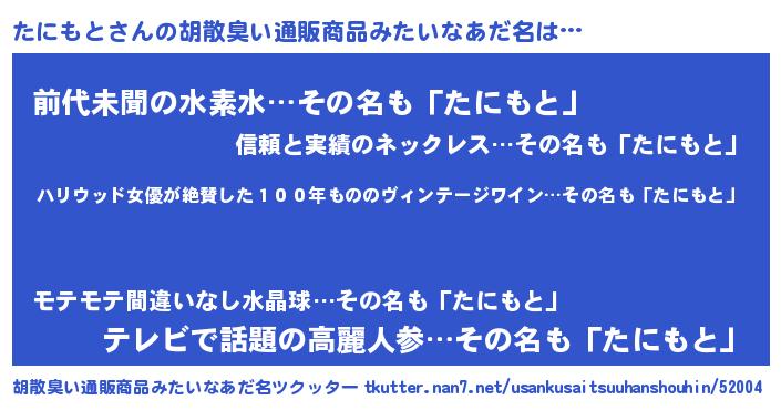 | 意味不明あだ名 | 『住所不定無職たにもと(3歳)』 |