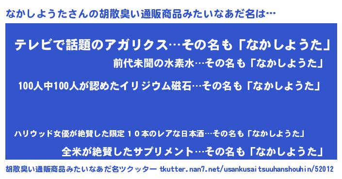 | ヘコむあだ名 | 『なか太郎』『なかしようた(爆)』 |