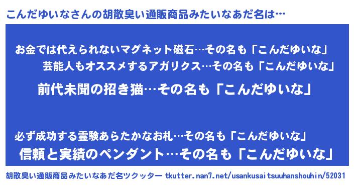 | 意味不明あだ名 | 『永久保存こんだゆいな』 |