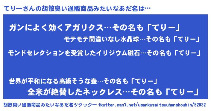 | ヒーロー風カッコイイあだ名 | 『慈愛の使者てりー』『超時空戦士テリー』 |