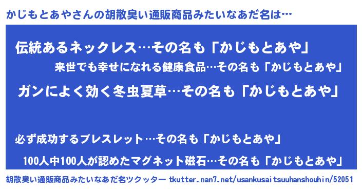 | 意味不明あだ名 | 『自称かじもとあや』 |