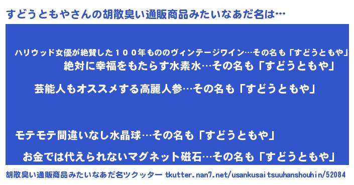 | ヘコむあだ名 | 『すどうともや(小並感)』『すどにー』 |