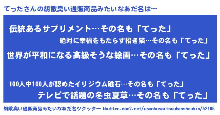 | 意味不明あだ名 | 『てったフォーエバー』『自称てった』 |