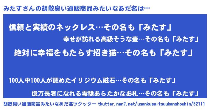 | 欧米人風あだ名 | 『トリンドルみたす』『ウサインみたす』 |