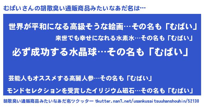 | 2回繰り返すあだ名 | 『むばむば』『むむばば』『ふかふか』 |