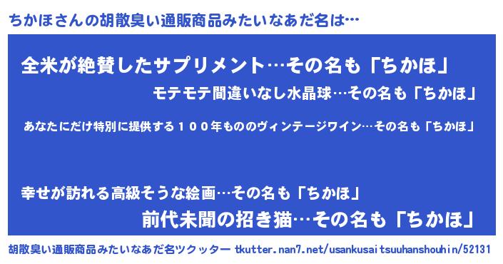 | 意味不明あだ名 | 『住所不定無職ちかほ(2歳)』 |