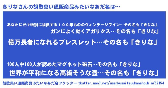 | 意味不明あだ名 | 『ペロリンきりな』『きりなフォーエバー』 |