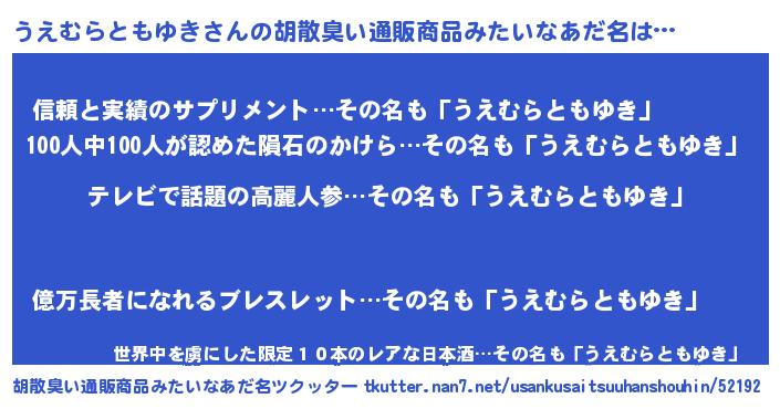 | 肩書あだ名 | 『うえむらともゆき閣下』 |
