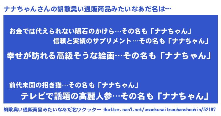| 意味不明あだ名 | 『ナナちゃんフォーエバー』 |