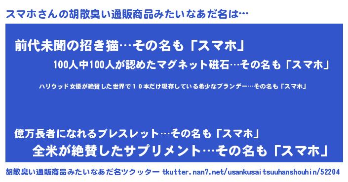 | 意味不明あだ名 | 『住所不定無職スマホ(71歳)』 |