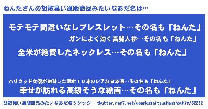| ヘコむあだ名 | 『ねんっぺ』『ねんっふぃ~』 |