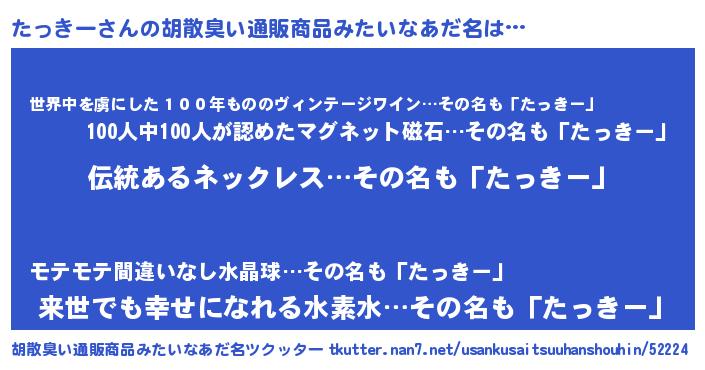 | 意味不明あだ名 | 『とにかく怪しいたっきー』 |