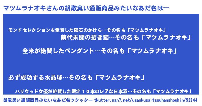 | 意味不明あだ名 | 『とにかく怪しいマツムラナオキ』 |